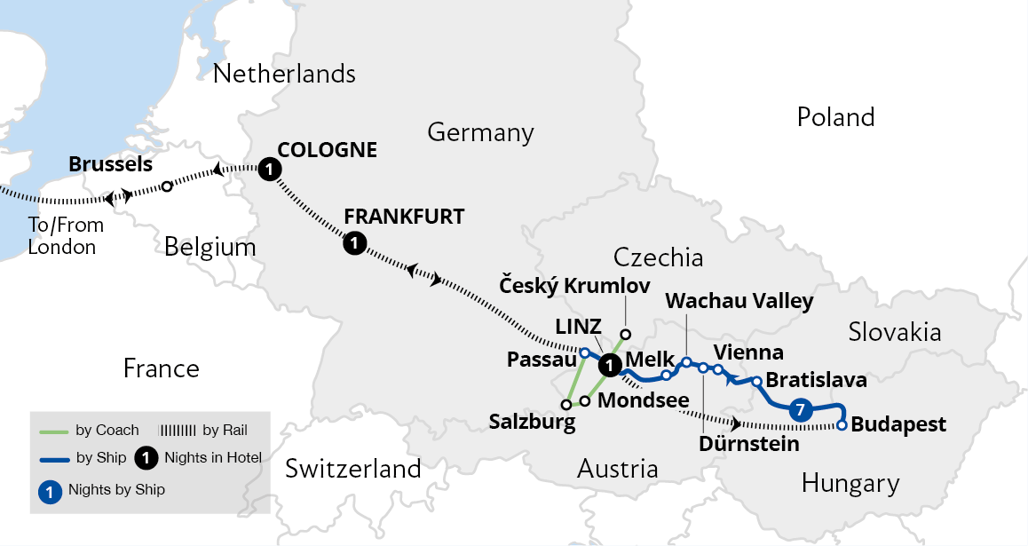 Explore the fascinating cities of Budapest, Bratislava and Vienna, marvel at the striking Melk Abbey in the Wachau Valley, indulge in local cuisine and sample some of the region's finest wines.