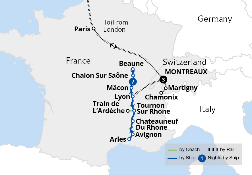 Discover the gems of southwest Switzerland, staying in luxurious Lausanne, then continue to Lyon for a seven-night cruise. During a three-night stay on the shimmering shores of Lake Geneva, we visit Château de Chillon and experience the Mont Blanc Express journey. The holiday continues with a cruise along the elegant Rhône which sees us enjoying...